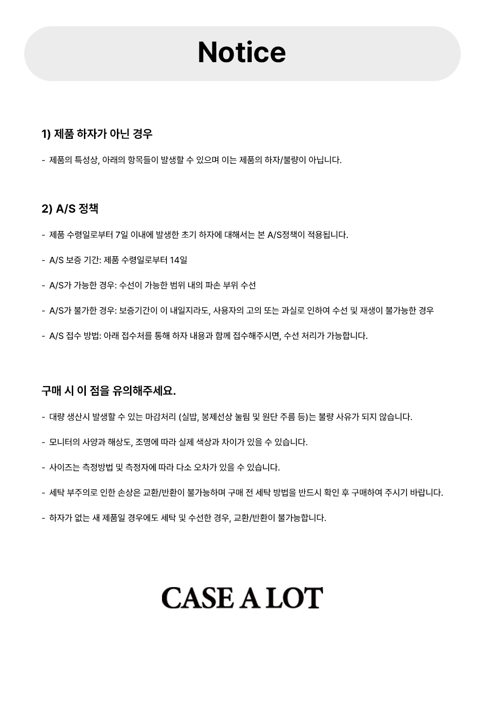 신청 방법 ㅣ 상품을 수령하신 날로부터 7일 이내로 고객 센터(070-8064-0299) 및 카카오톡 플러스친구 '케이스어랏'